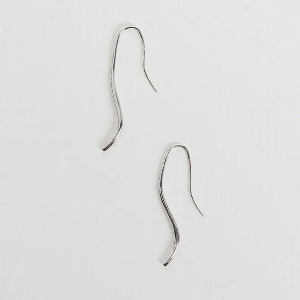 Introducing the Lenora Earrings. The earrings feature a sleek, fluid silhouette that slips effortlessly through the ear — no backing required. Crafted with a refined minimalism, their gentle curve catches the light with quiet sophistication.