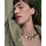 Organic square tiles mirror sand dunes shaped by natural winds. Each square is linked together forming a dynamic gold necklace full of texture. Finished in high-polish gold.