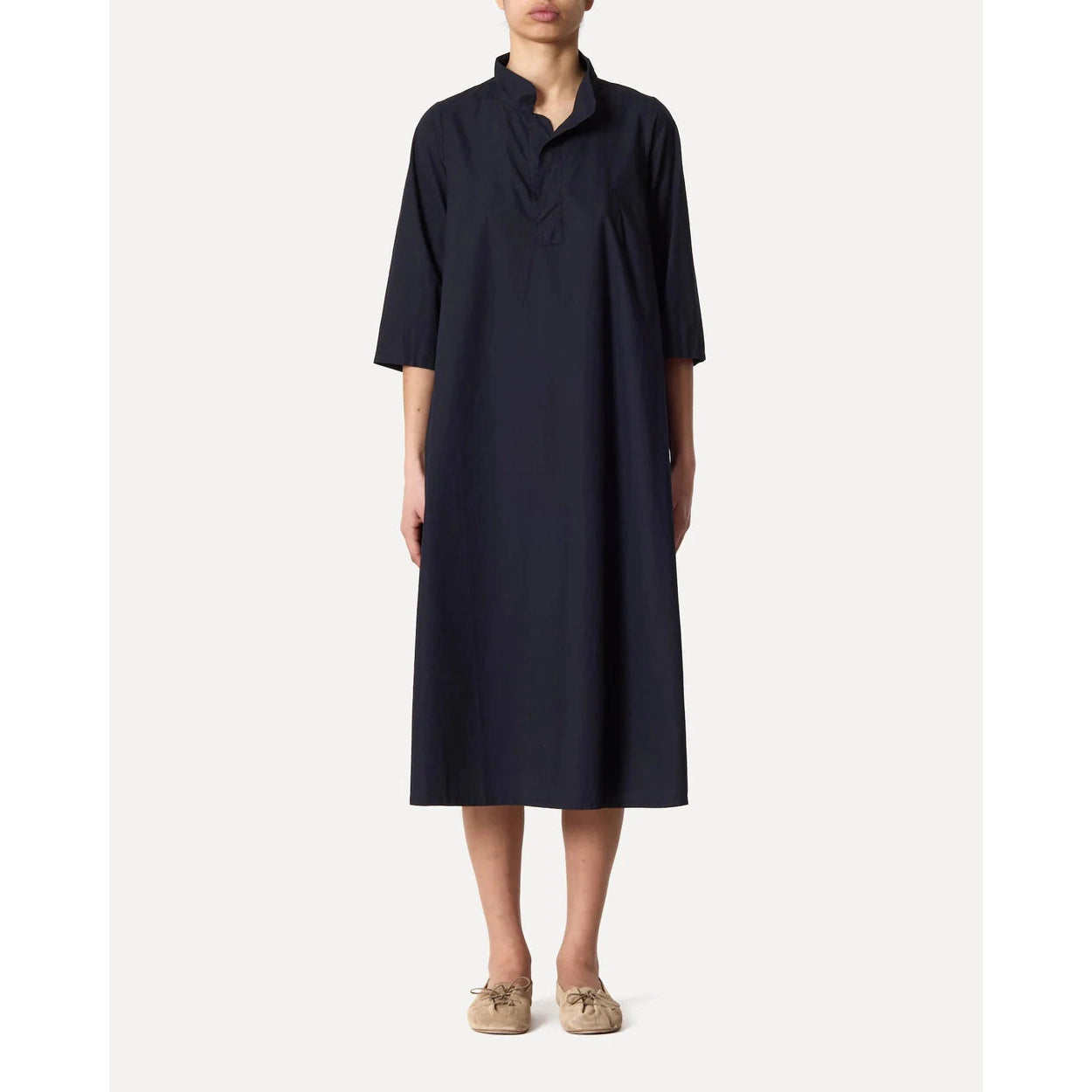 MID-LENGTH DRESS WITH HALF SLEEVES AND MANDARIN COLLAR IN COTTON POPLIN