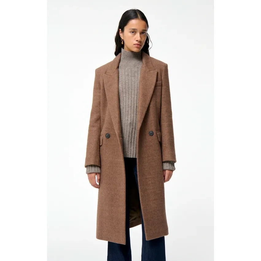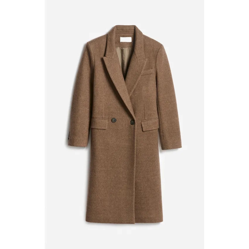 A revisited classic, FALOUA offers a bold silhouette thanks to its double-breasted design and elongated straight cut. A timeless essential in textured wool fabric.