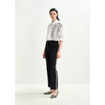 Crafted from 100% cotton, this shirt is cut for an oversized silhouette with dropped shoulders and a curved hem that falls longer at the back. It features a full button fastening and classic pointed collar. A sweeping feather motif, embroidered with sequins, rhinestones and beads, adds dimensional detail across the chest and shoulder.