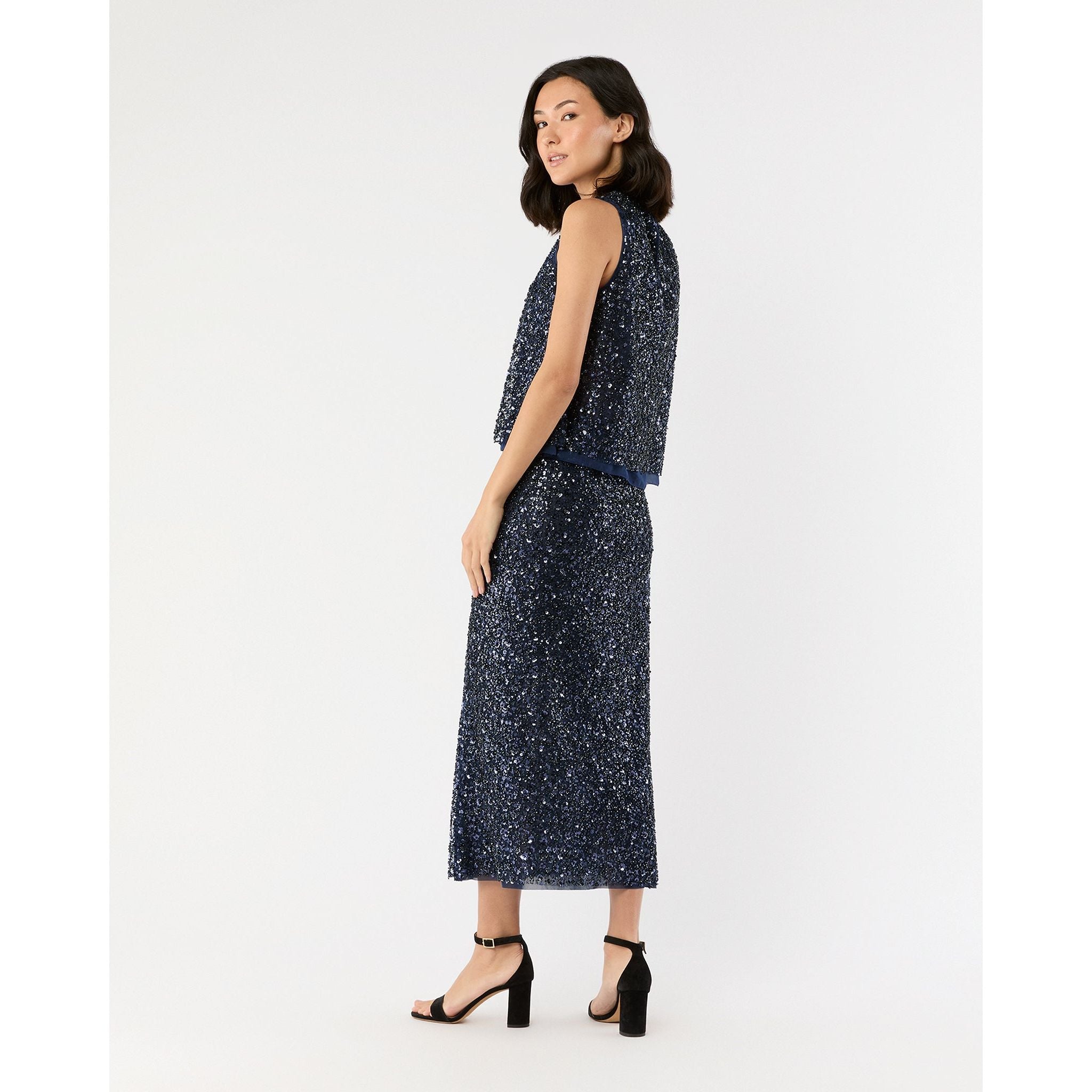 Navy Beaded Mesh