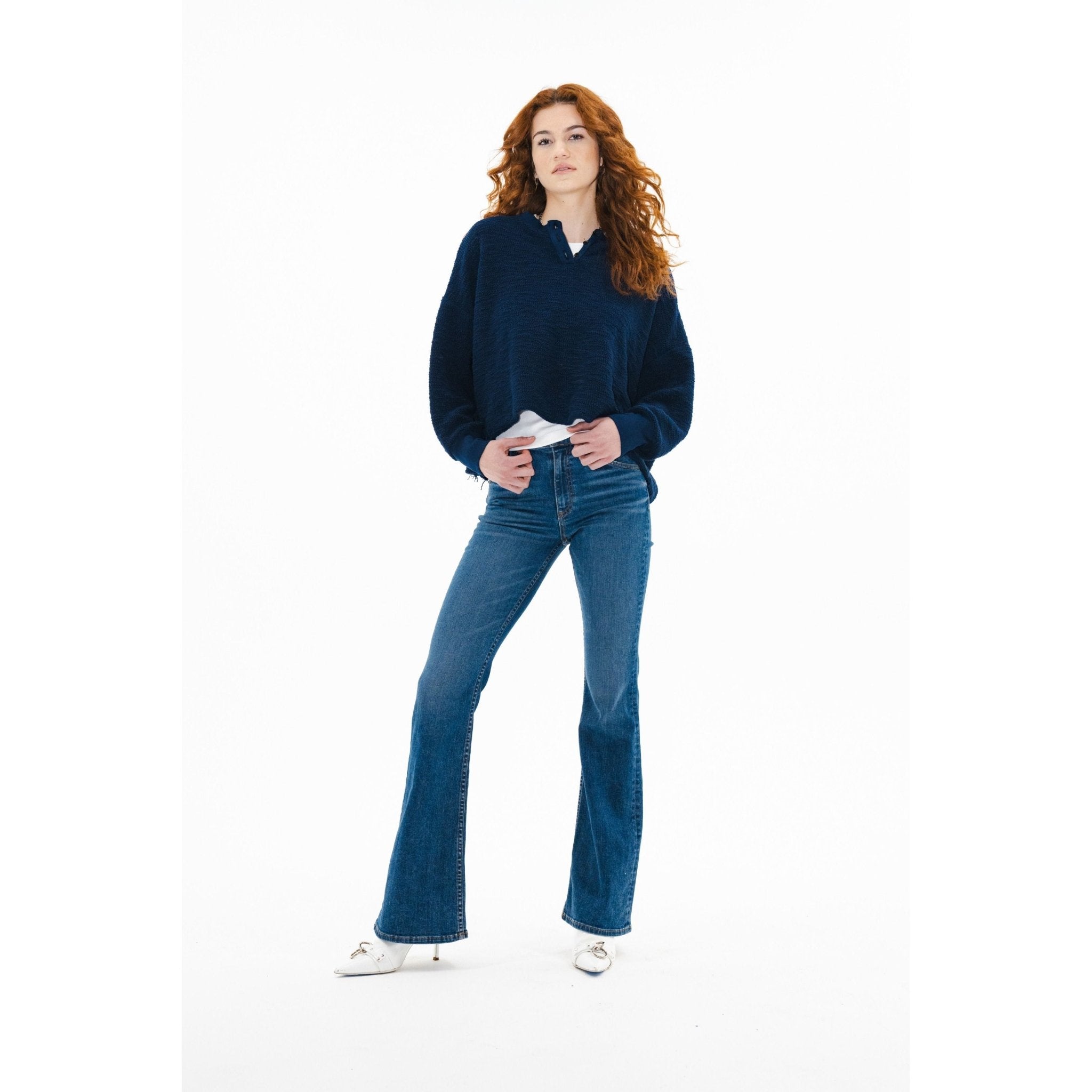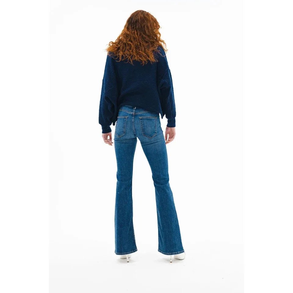 The Bond Street is your go-to flare—cut from soft Japanese stretch denim with just the right amount of structure. A sleek mid-rise and slim fit through the hip open into a dramatic full-length leg with a 21" opening. The classic five-pocket styling and saturated Paris wash make this jean an effortless standout for day or night.