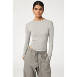An iteration of our best-selling Lavi T-shirt, the Simon is cut in an intentionally lightweight micro-Modal 2x2 rib. This slinky t-shirt features long sleeves, an exaggerated curve hem, and thick binding throughout and is thoughtfully designed to be both flattering and comfortable. Layer over an interesting bralette or allow it to serve as a base layer under a coat.