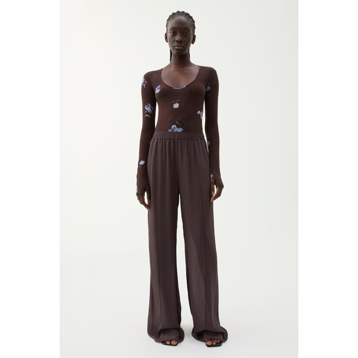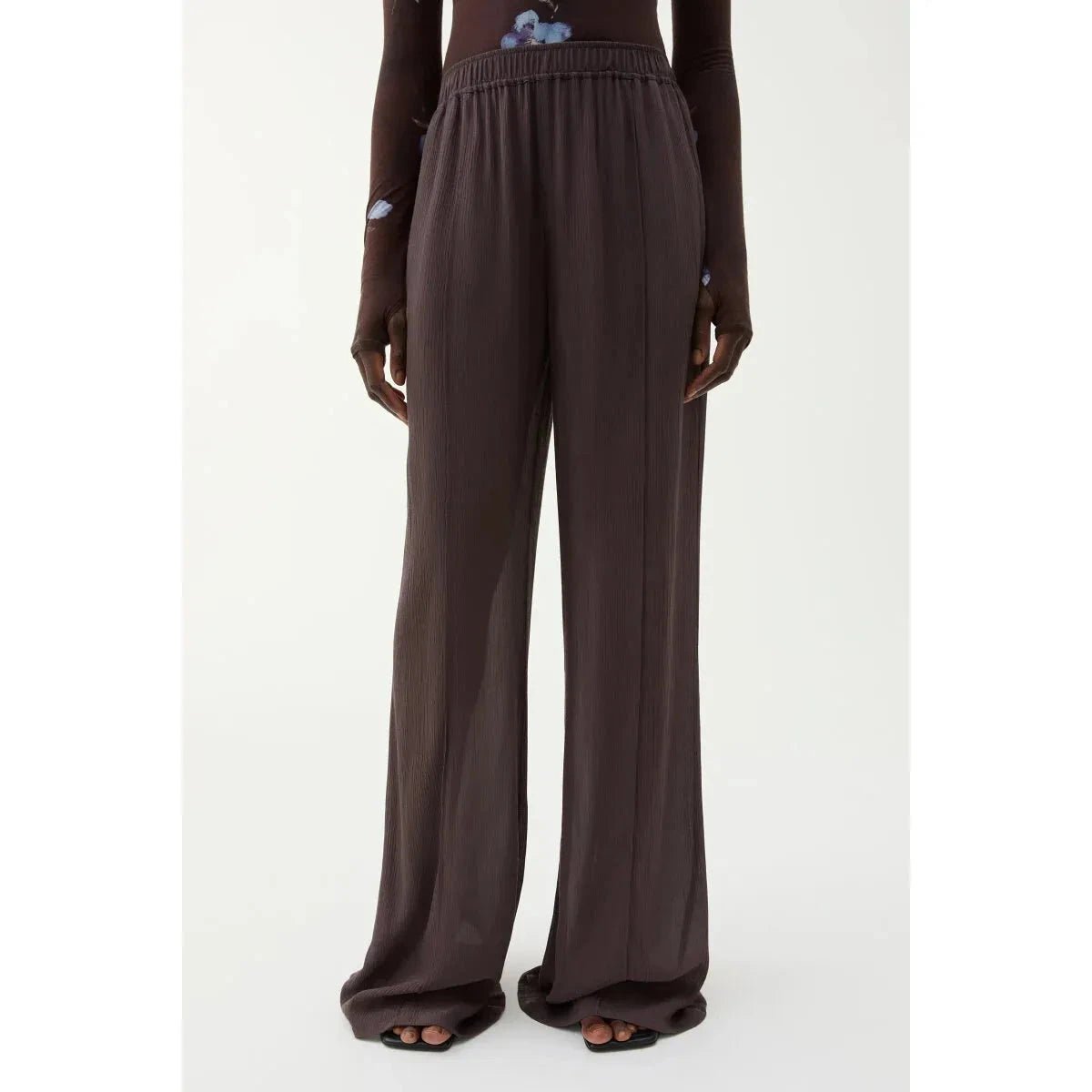 Fluid and flowing, the Ezra pants are crafted from a blend of silk with a beautiful drape. Presented in a versatile brown hue, it is shaped with an elasticated waistband and slit pockets at the hips. Allows yours to draw out the rich tones of the season’s blurred floral prints.
