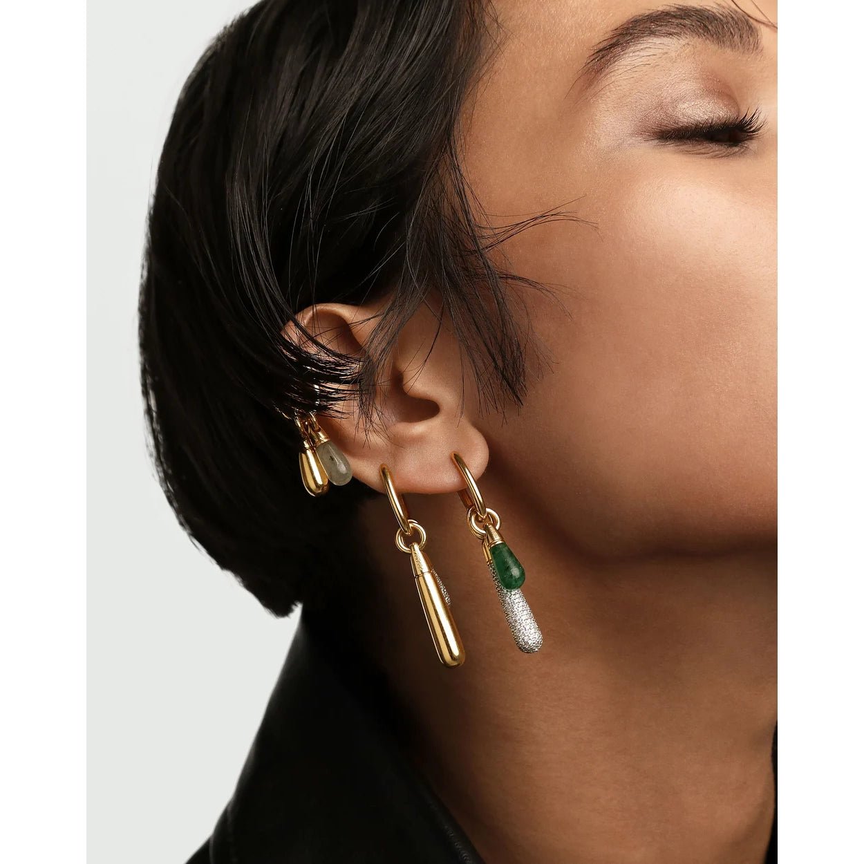 The Icons speak to your individuality and celebrate the art of personalization. Featuring distinctive drop shaped natural gemstones like labradorite and aventurine as well as hand-set pavé, these pieces are the perfect blend of design and craftsmanship. At the core of the collection lies the Drop pendants, a canvas for creativity to stack on hoops or necklaces. Embrace an ever-changing collection and unlock a new jewelry language.