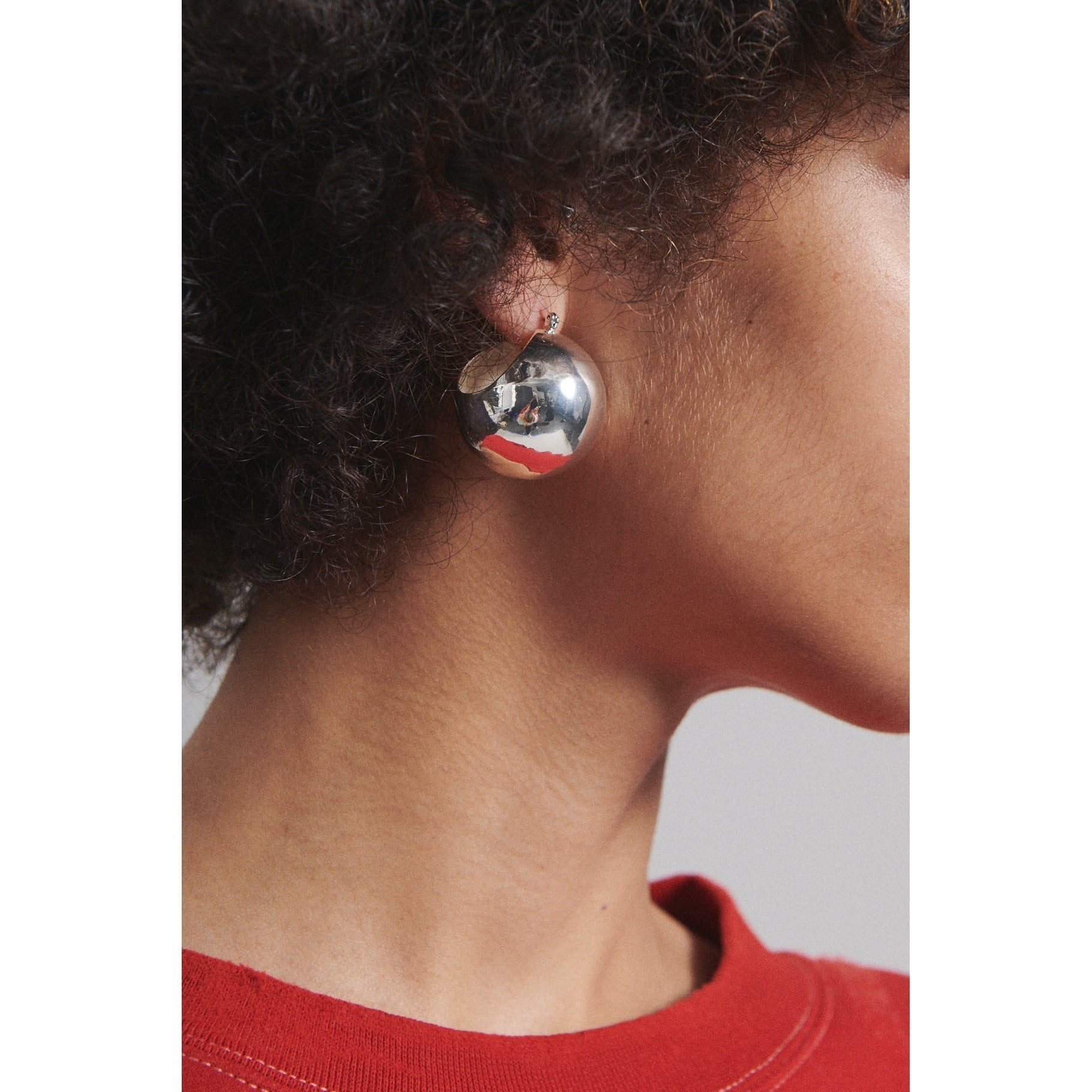 Large hollow oblong hoop earrings with a hinged fastening for pierced ears. Sold as a pair.