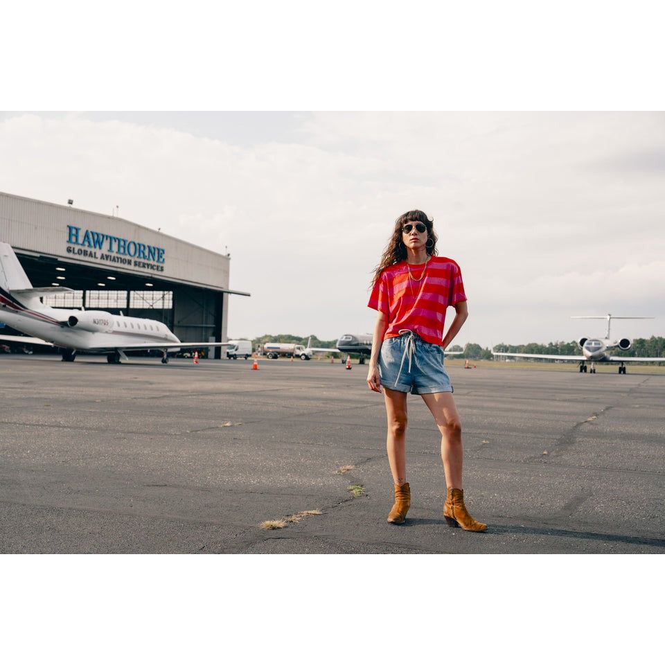 Laid-back fit with a curved leg opening and elastic waistband. Designed for comfort and ease, the Cancun Short is made from Japanese denim in our signature Berkeley wash. Comes with a removable rope belt.