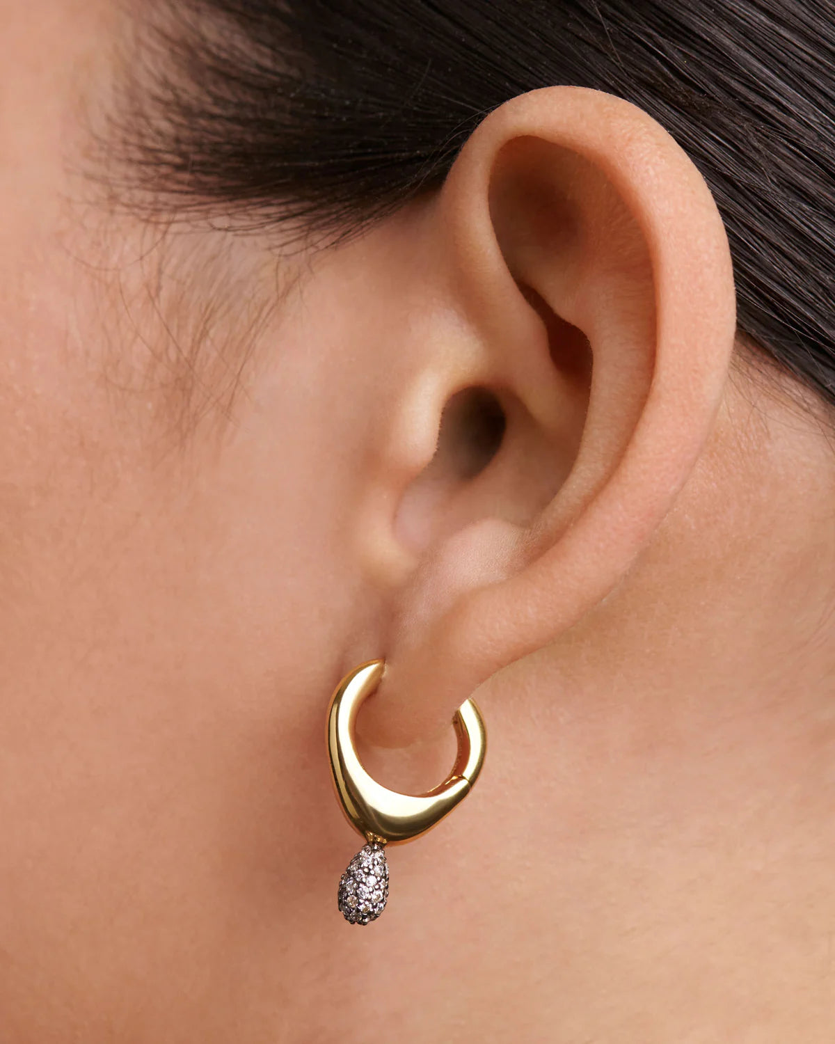 Celebrating the flowing spirit of nature, the capsule introduces everyday staples with a twist: rings, hoops and necklaces defined by organic silhouettes, a play of irregular textures and pavé finish. The collection features PDPAOLA’s signature use of natural gemstones such as green aventurine and blue chalcedony, merged with Scalpers’ casual aesthetics, bringing to life unique pieces that smoothly sway from day to night.