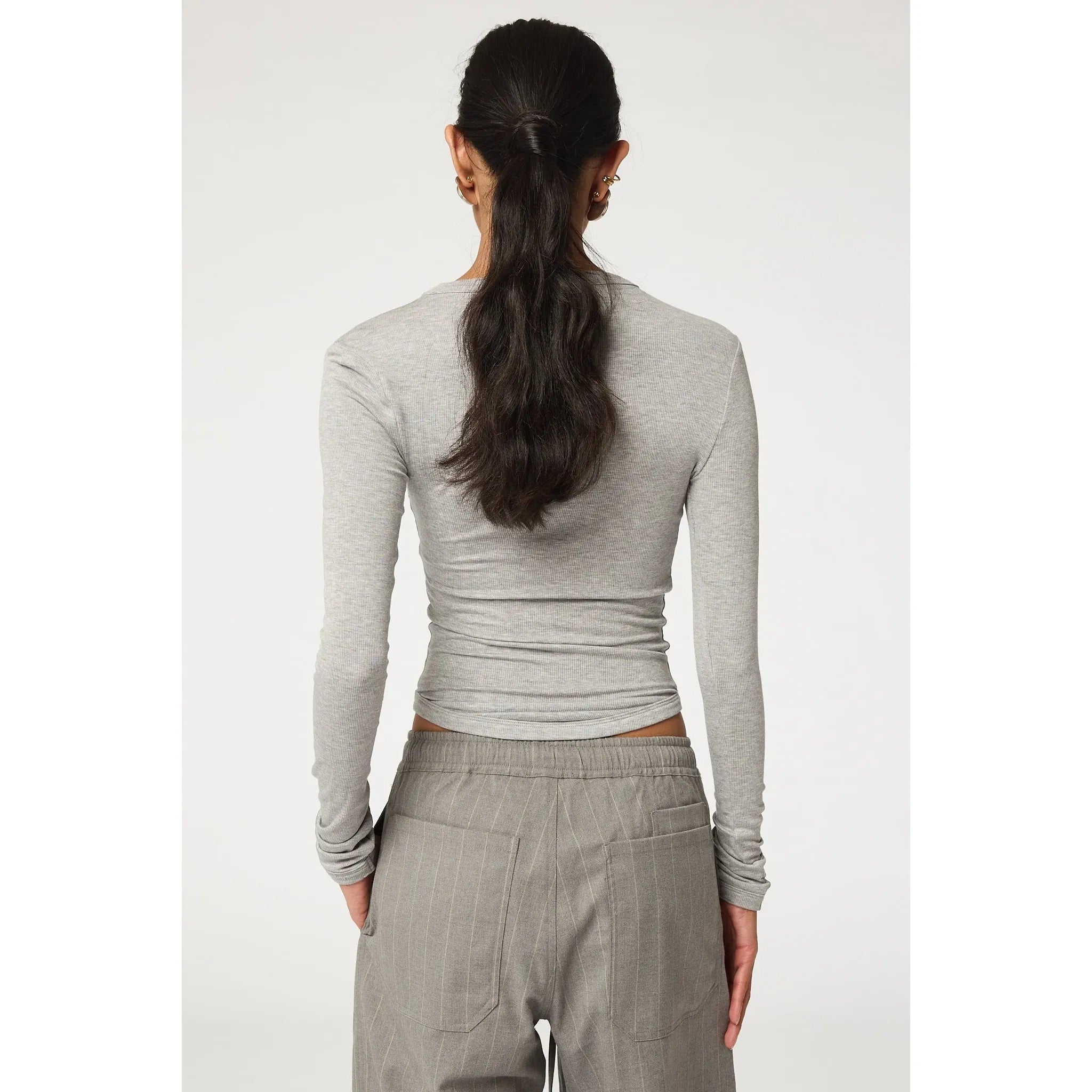 An iteration of our best-selling Lavi T-shirt, the Simon is cut in an intentionally lightweight micro-Modal 2x2 rib. This slinky t-shirt features long sleeves, an exaggerated curve hem, and thick binding throughout and is thoughtfully designed to be both flattering and comfortable. Layer over an interesting bralette or allow it to serve as a base layer under a coat.