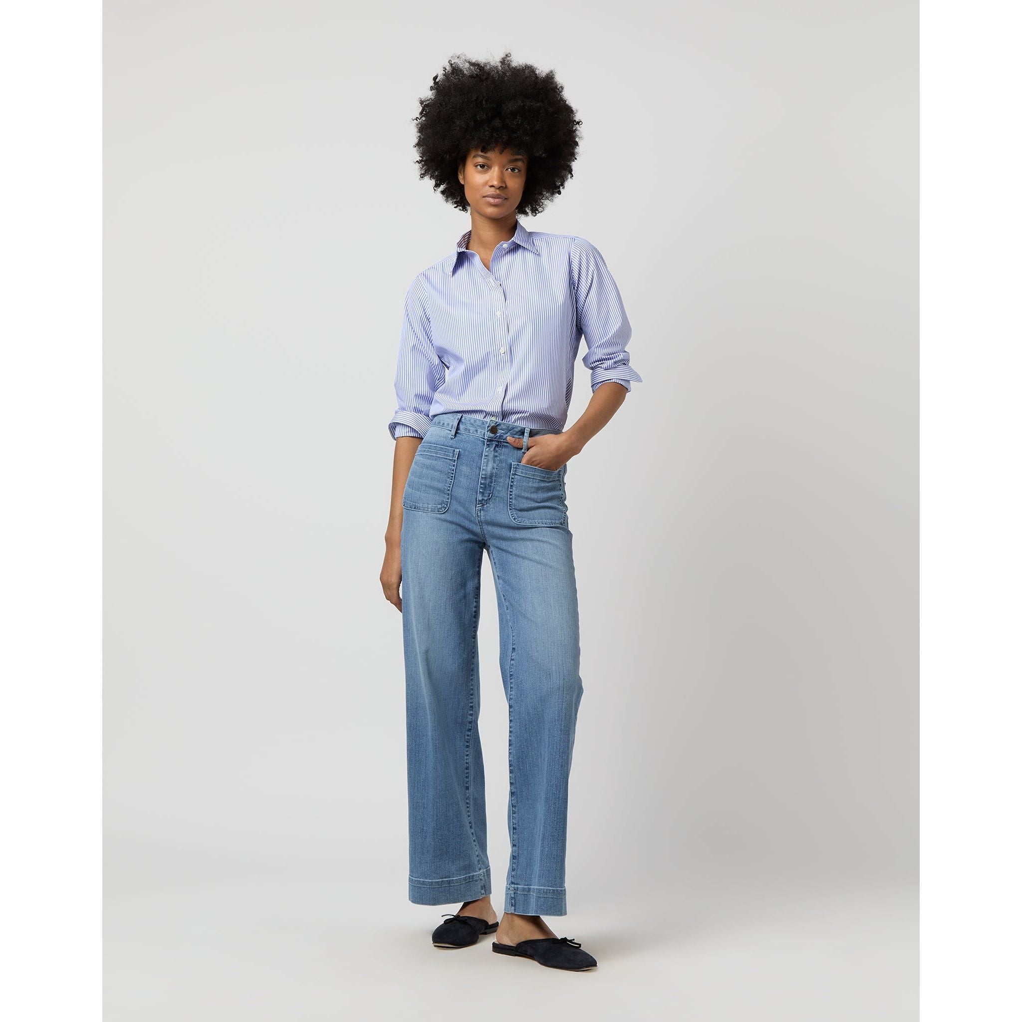 The Icon is the shape that started it all — think 'collared shirt' in its purest form — with a classic, scaled-down point collar and a slim cut. Dead-simple, dead chic. And in a crisp, menswear-striped poplin, it's probably the easiest way to elevate almost every single item in your closet, from the oldest jeans to the most structured skirt to everything in between.