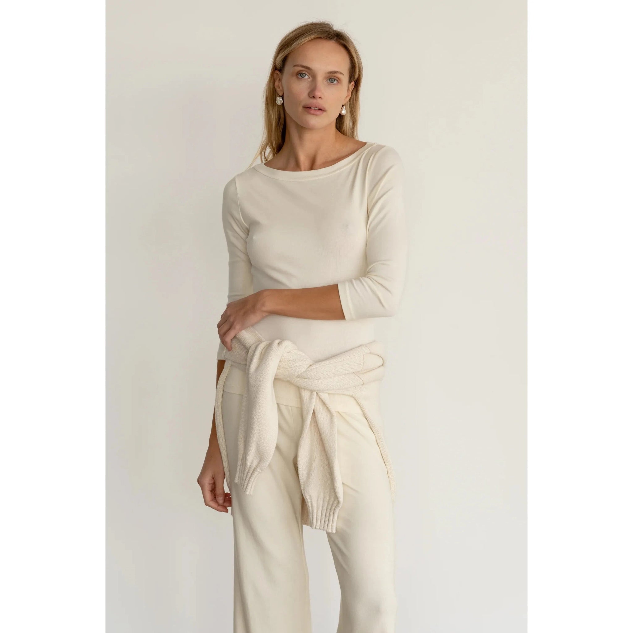 The Baby Rib Boatneck is crafted from our butter-soft baby rib fabric and designed with a boat neckline, ¾ length sleeves, and a flattering full-length fit.
