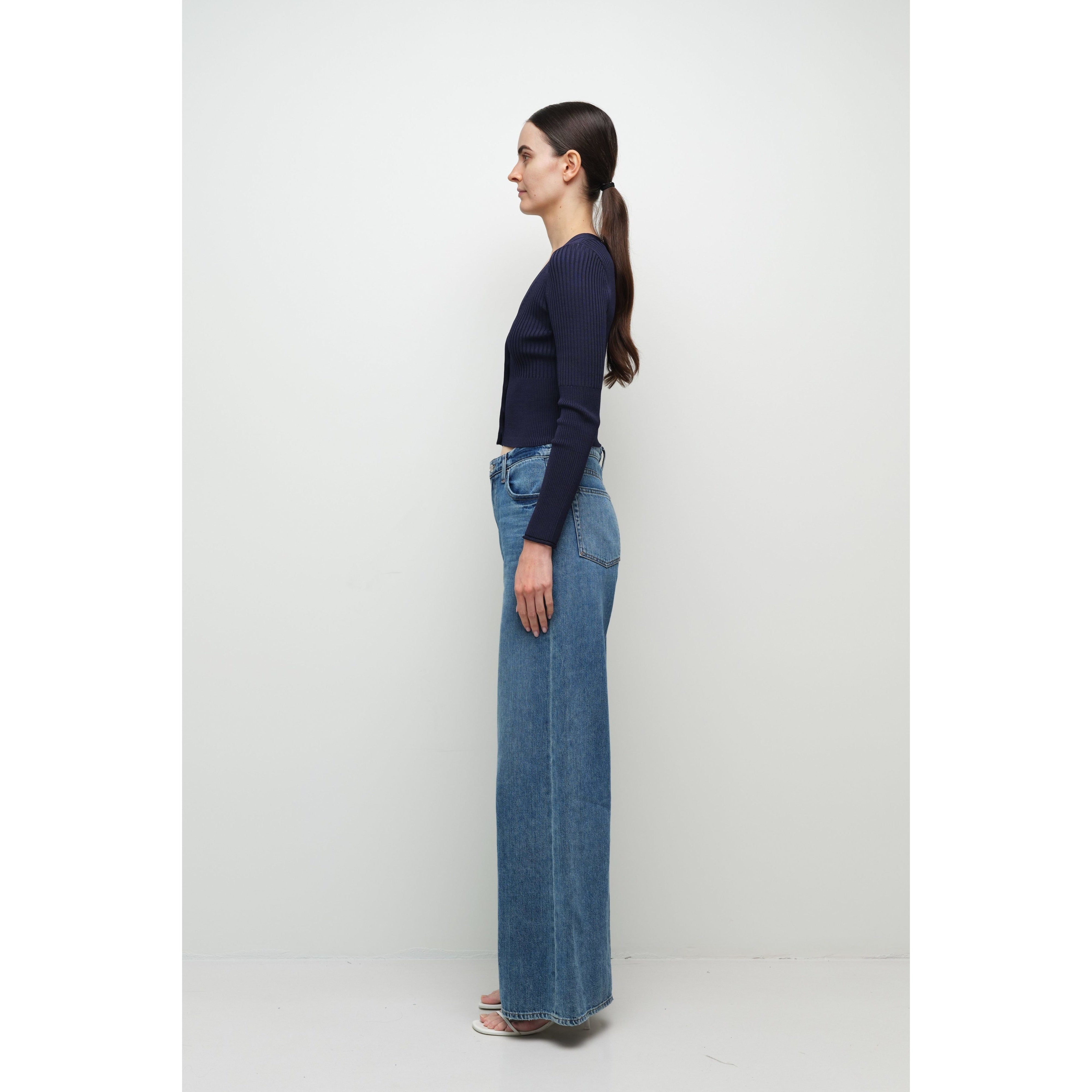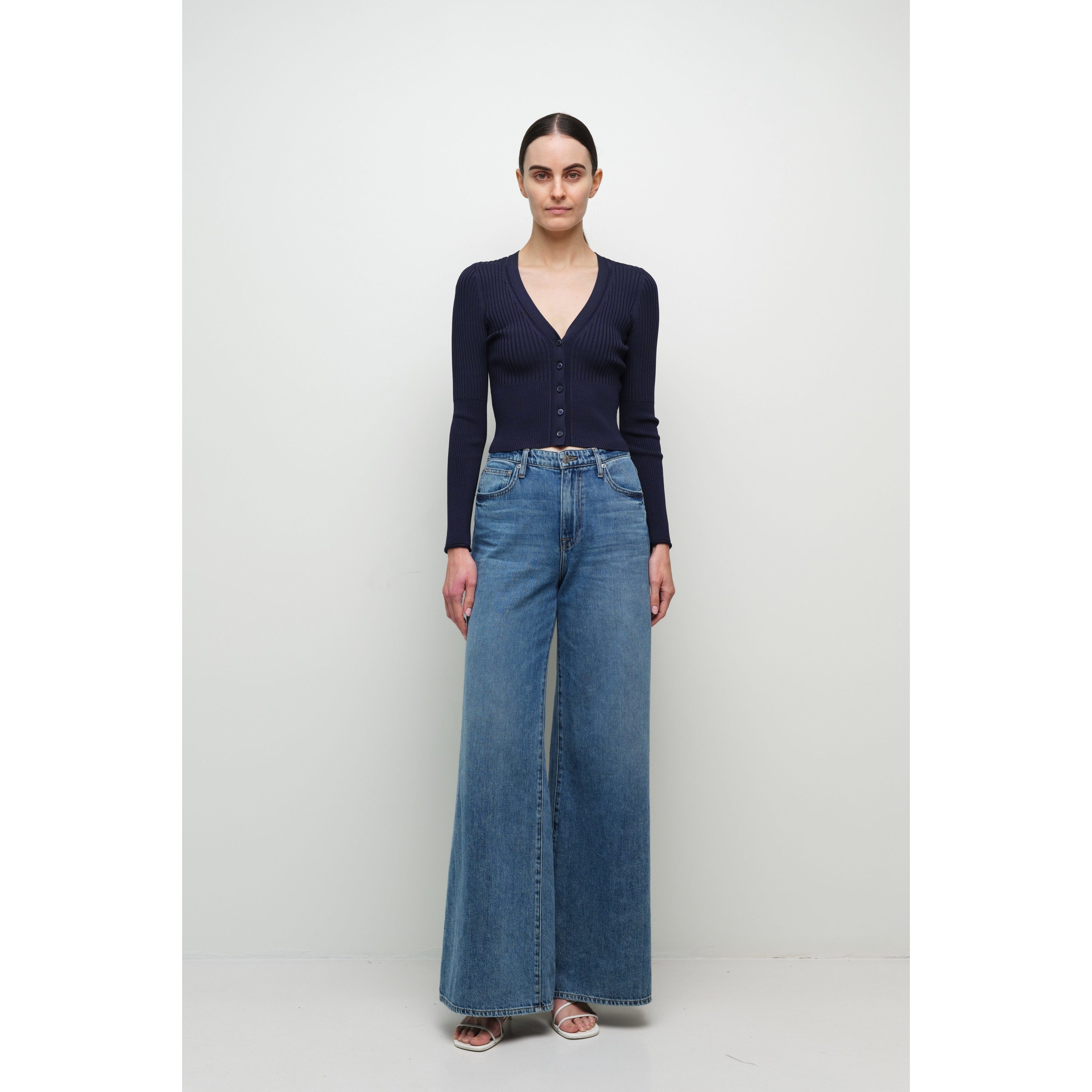 The Ailany Rib Knit Cardigan in Midnight.Crafted in compact rib knit, this fitted shrunken cardigan features a streamlined silhouette with button-front detailing.