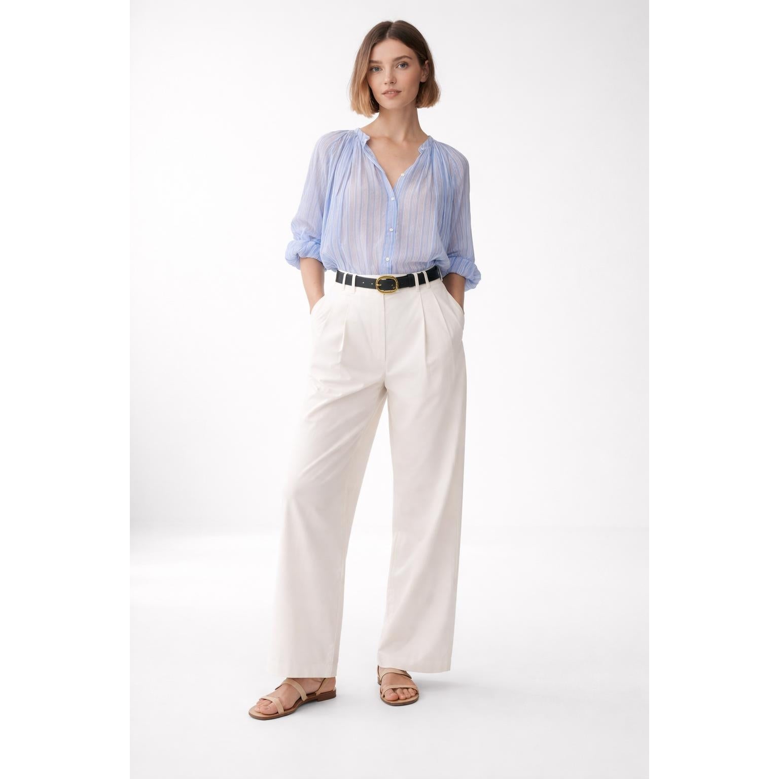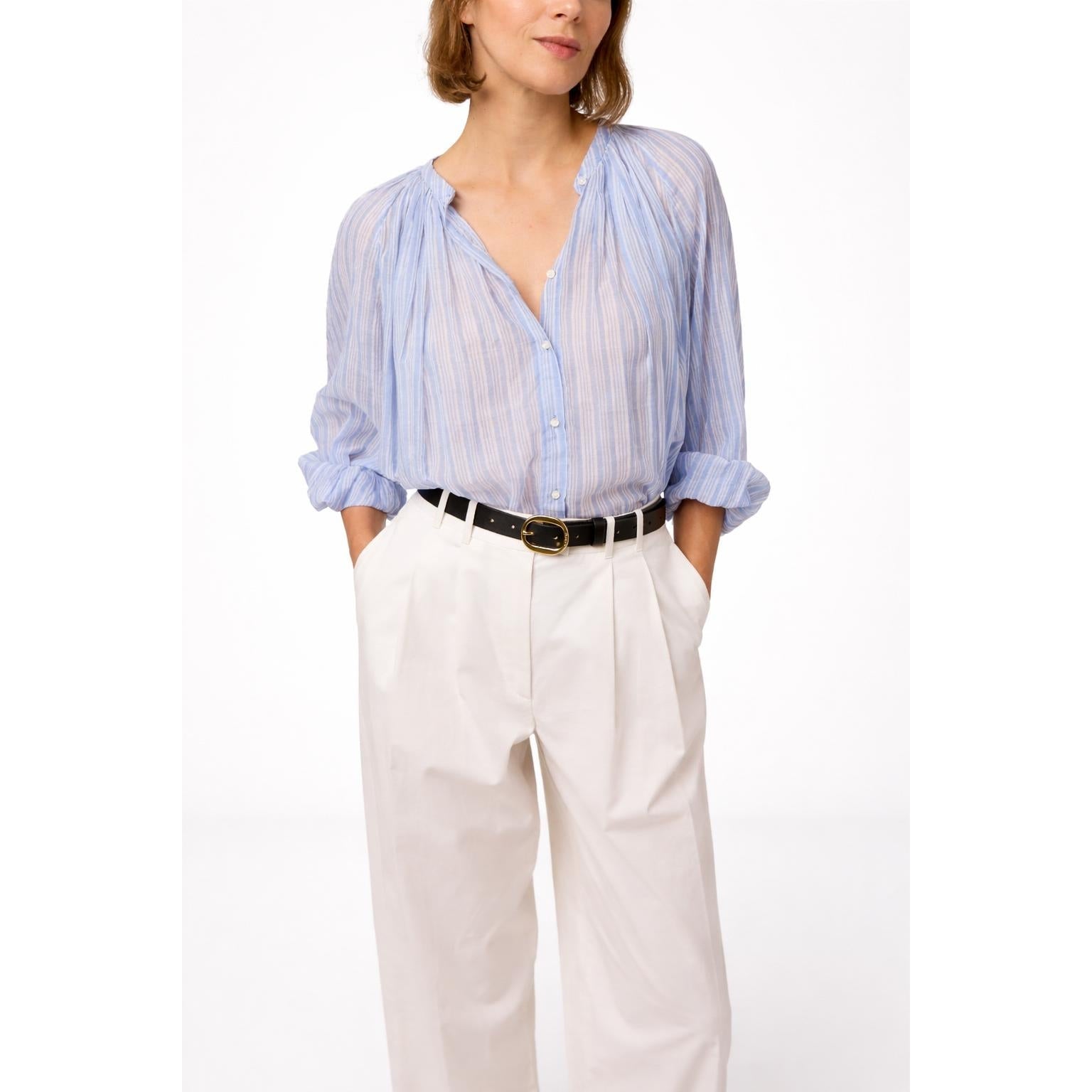 Handwoven from soft cotton in our yarn-dyed Salerno Stripe, the Jonie Top takes cues from our beloved Jane Blouse, with its billowy cut and mother-of-pearl buttons. Wear it loose, or tuck it into your favorite high-waisted jeans.