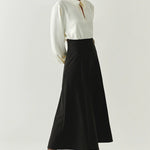 The Sol Skirt is crafted in a smooth, stretch-enhanced fabric that drapes beautifully over the body. This minimalist black skirt is a versatile foundation for both casual and refined looks.