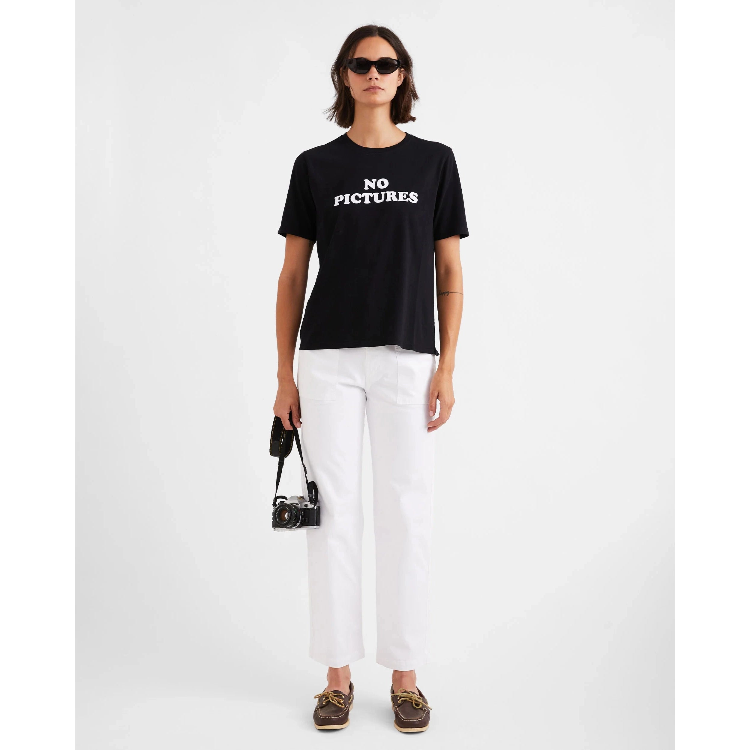 Embrace the moment IRL. The Modern No Pictures says it all. Made from soft 100% organic cotton, this classic tee features flocked lettering for a subtle, tactile finish. Easy, graphic, and quietly opinionated.