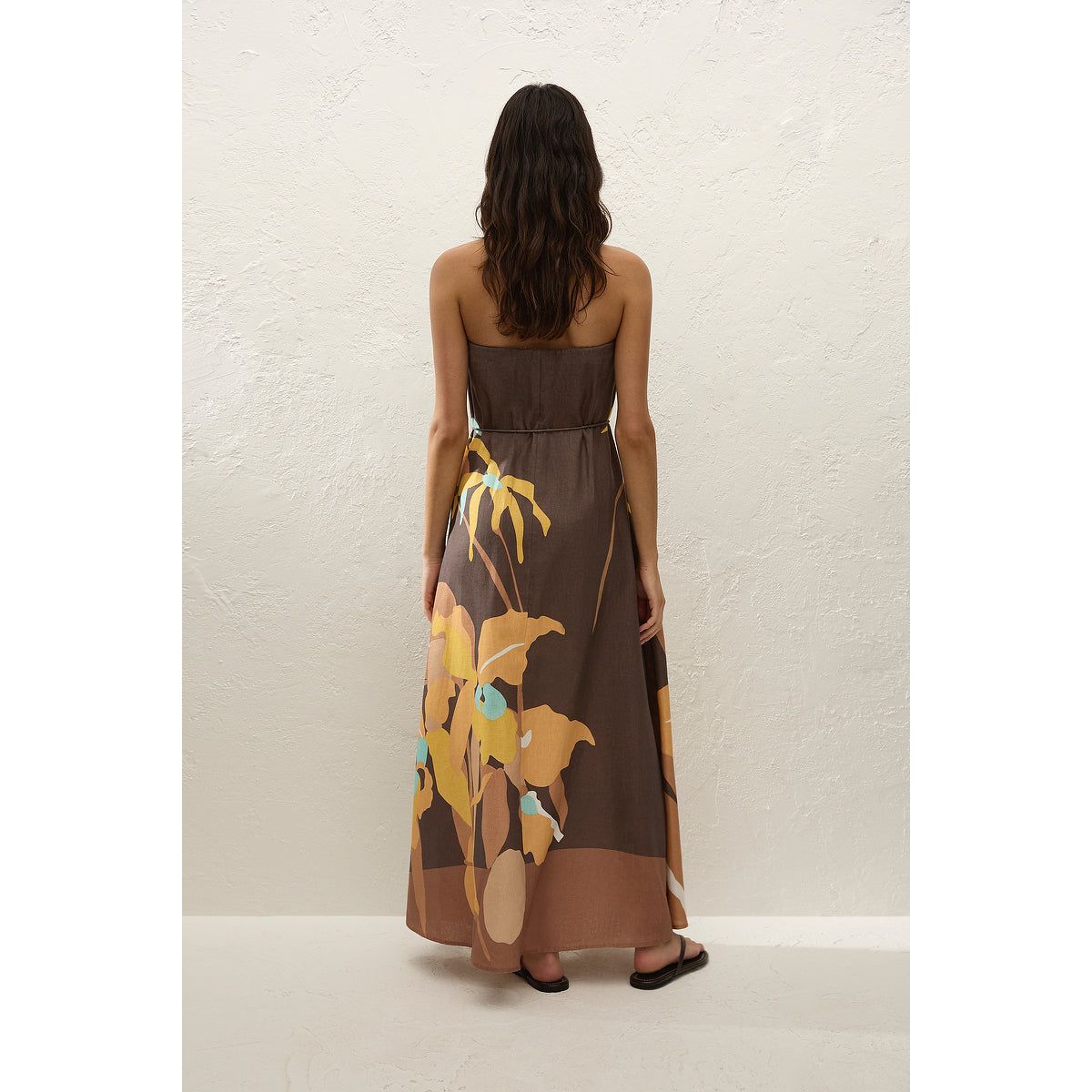 A vacation-inspired maxi dress, designed from a signature 100% European Flax® linen. Strapless with a relaxed A-line silhouette that falls down around the ankles, there is a shirred underbodice for support through the bust. With effortless, summer appeal in mind, style with a simple sandal for day to night dressing. This style is true to size. The shirred underbodice offers some stretch, however is intended to support the bust.